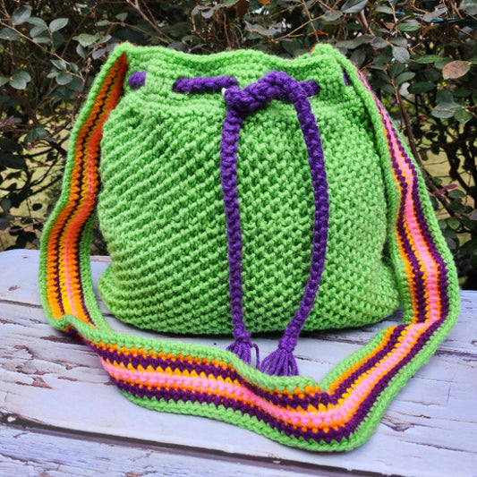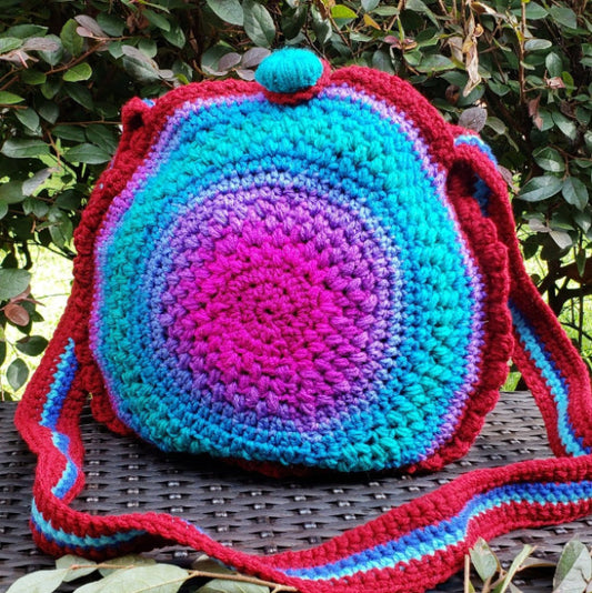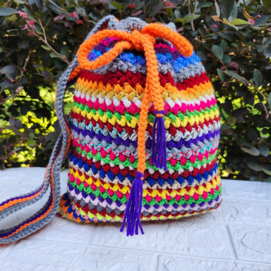 Precioso Bolso Redondo en Ganchillo, Bolso Circular en Ganchillo Multicolor.