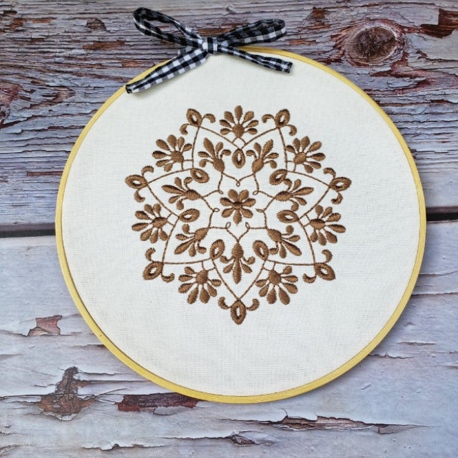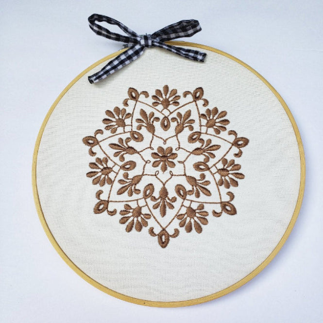 Aro de bordado de bambú Mandala de pared con un lazo de cuadros en la parte superior para colgar en la pared. Edición limitada