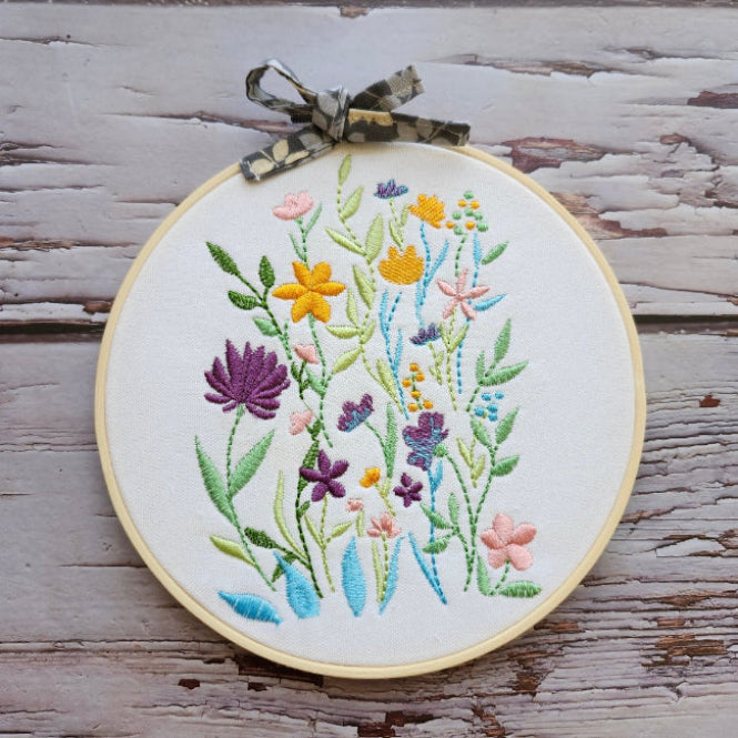 This is an adorable bamboo embroidery Floral Field hoop wall art hanging personalized, 8 x 8 inches (20 cm), it is a lovely gift for Housewarming, or Mother's Day, or any occasion this embroidered floral design is 100% handmade by me in machine embroidery.