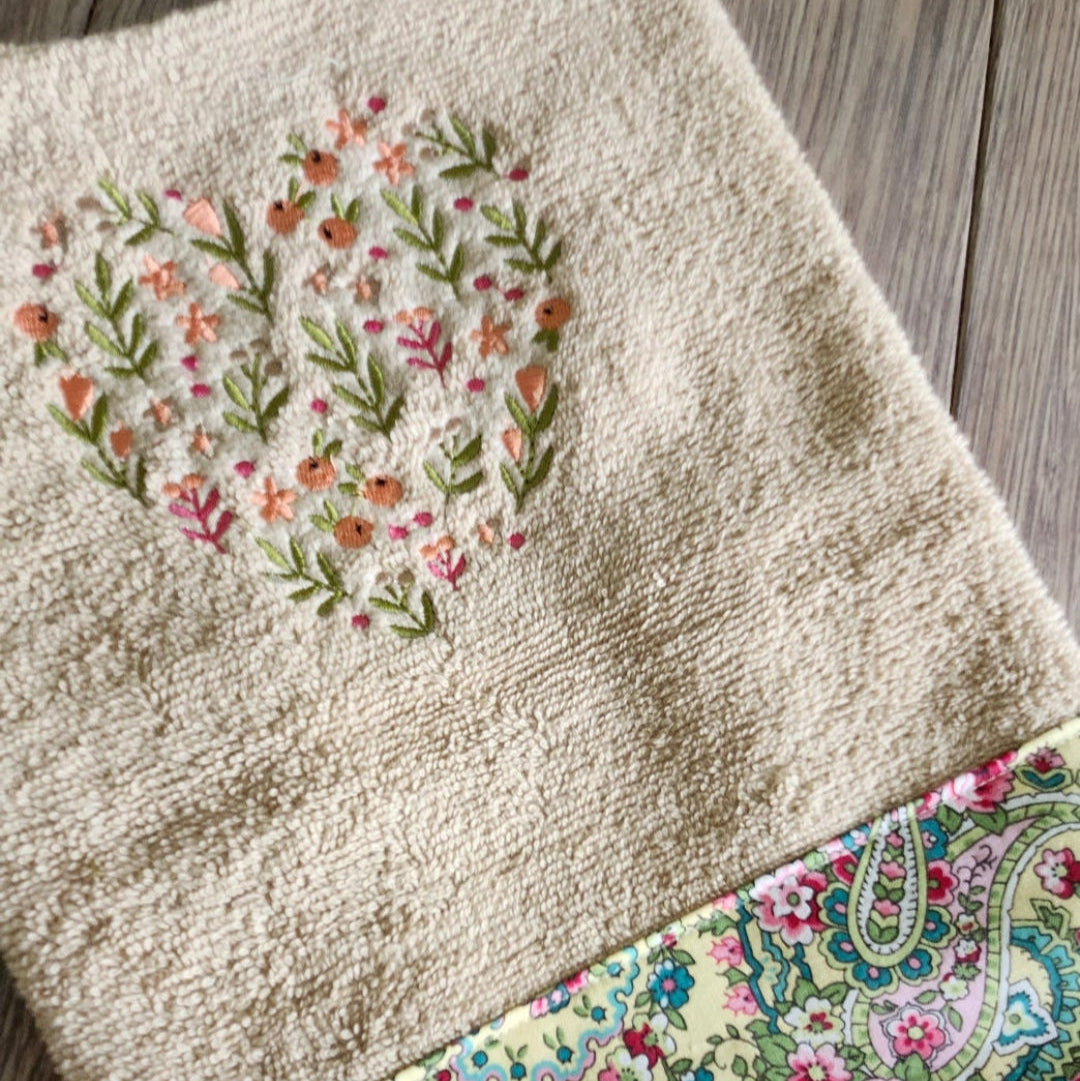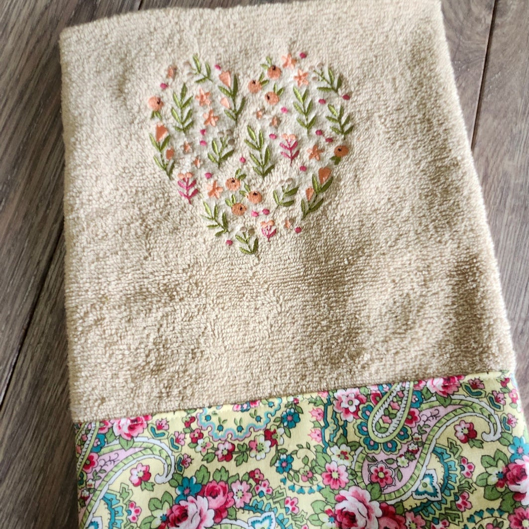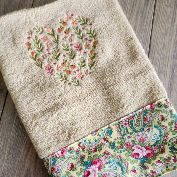 HAND TOWEL EMBROIDERY Floral Heart with FABRIC DECOR