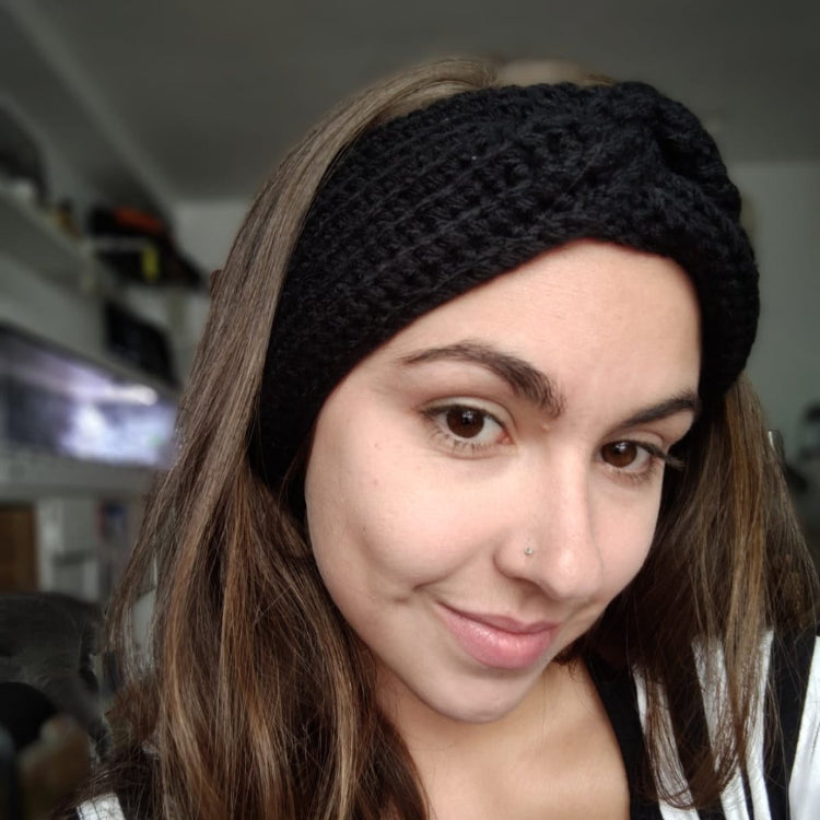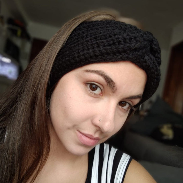 DIY Crocheted Black Headband Twist Hairband Mom gift for any occasion.
