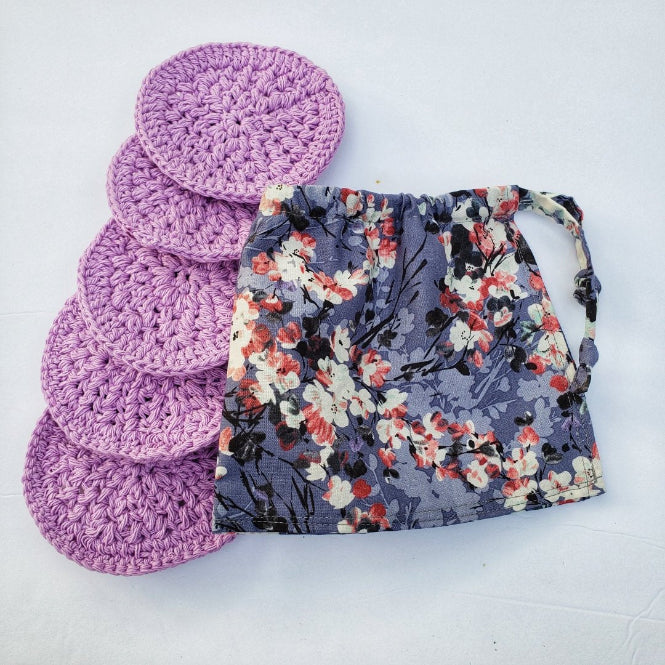 I made this Set of five crochet cotton eco-friendly, Makeup remover pads reusable, washable and sustainable gift for all family. These unisex scrubbies are ideal for exfoliation when used with your facial cleansing products. Visit my handmade store, I have another scrubbies colors (The scrubbies come with a floral bag)