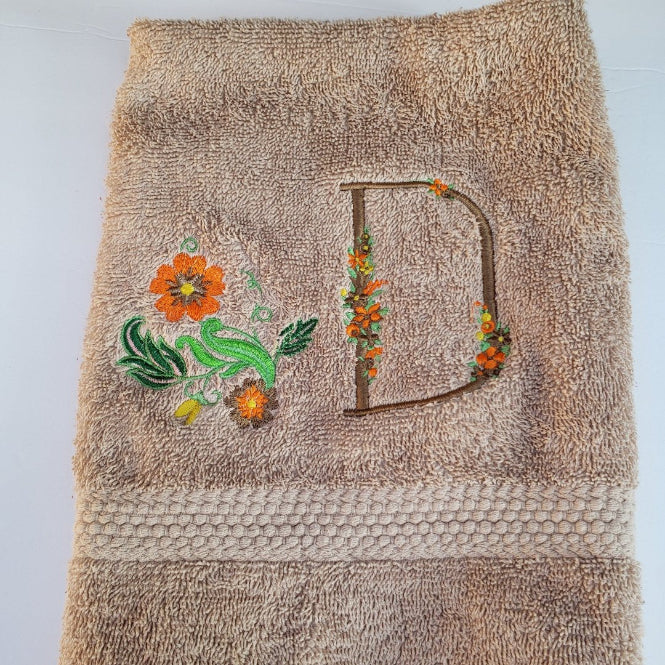 Custom Fantastic Embroidery floral Hand Towel personalized cotton towel with machine embroidery designs and personalized name or initial, pretty decorative designs towels, bathroom decor. You can personalized your towel in any color with embroidered design in the towel is 100% machine embroidered by me. It's one of a kind by L' Unique designs. It has a very delicate light weight and very soft pattern that shows beautifully. It's perfect for a Mother's Day Gift, Birthday Gift, Anniversary Gift, Wedding Gift, Christmas Gift, or for any other special occasion.