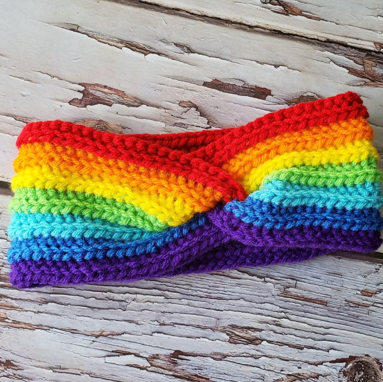 Rainbow Crocheted Headband, Infinity Twist Hairband Best Friend Gift for any occasion.