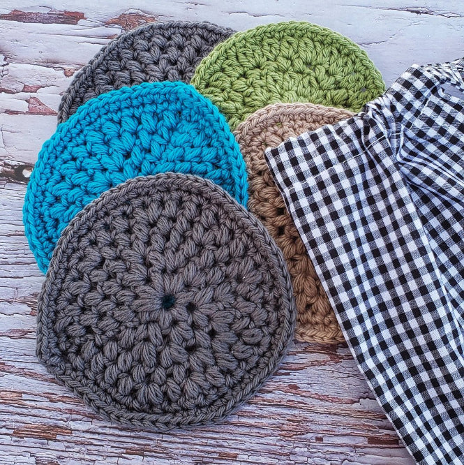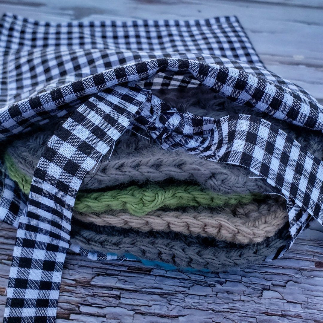 I made this Set of five crochet cotton face scrubbies eco-friendly, make up remover pads reusable, washable and sustainable for all family. These unisex scrubbies are ideal for exfoliation when used with your facial cleansing products. Visit my handmade store, I have another scrubbies colors (The scrubbies come with a plaid bag)